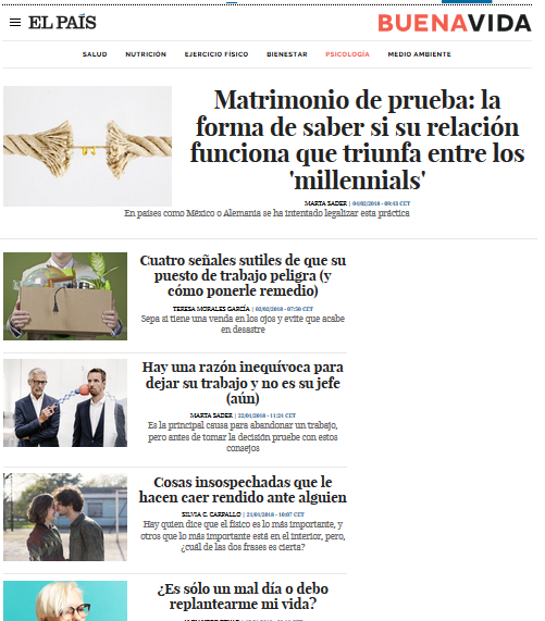 Por ejemplo, si eres psicólogo o coach, puedes mirar en el suplemento de bienestar de El País, Buenavida. Y, concretamente, en la sección de psicología.
